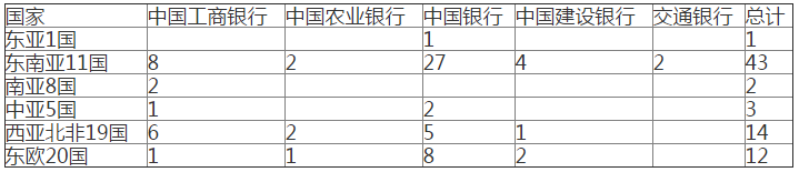 其次是分布的不均衡。以中国五大商业银行为例,截止2016年年末,工、农、中、建、交,五大商业银行在"一带一路"沿线设有76个分支机构,其中在东南亚地区数量达到43个,而其他地区则寥寥无几,区域集中度非常高。