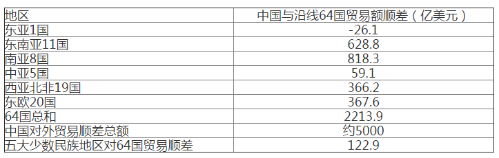 表4中国对"一带一路"沿线64国贸易顺差额