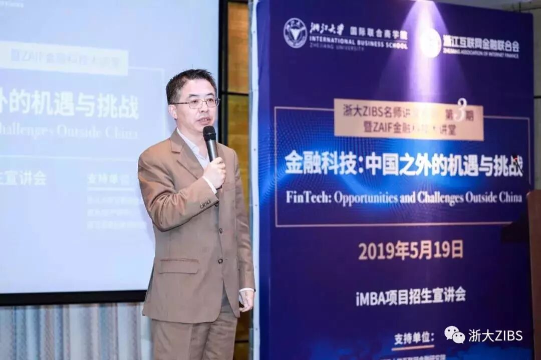 5月19日,由浙江大学互联网金融研究院(以下简称“浙大AIF”)支持,浙江大学国际联合商学院(以下简称“浙大ZIBS”)和浙江互联网金融联合会(ZAIF,以下简称“联合会”)共同主办的“金融科技:中国之外的机遇与挑战”讲座在杭州举行。