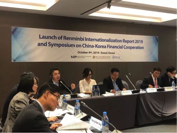2019年10月4日下午,由中国人民大学国际货币研究所(IMI)、韩国对外经济政策研究院(Korea Institute for International Economic Policy, KIEP)、浙江大学国际联合商学院联合主办的“《人民币国际化报告2019》首尔发布会暨中韩金融合作研讨会”在韩国首尔中心辉盛坊国际酒店隆重举行。