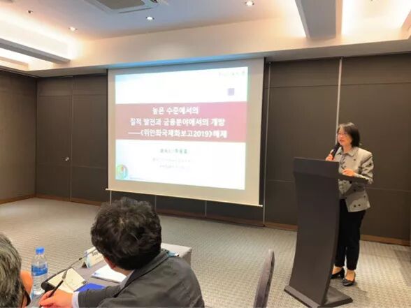 Yang Pyeong Seob博士首先致开幕词。他指出,中韩两国的经贸往来已经进入“321时代”,即双边进出口总值突破3000亿美元,直接投资突破2000亿美元,人员往来超过1000万人次,具有良好的发展前景,应该抓住以金融科技为代表的第四次工业革命机遇,进一步活跃双方金融合作,找到共赢模式。