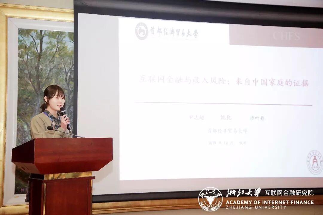 首都经济贸易大学金融学院硕士研究生仇化对其文章《互联网金融与收入风险:来自中国家庭的证据》进行汇报,指出互联网金融参与对提高家庭总收入具有积极影响,但也在一定程度上使得收入不确定性增加;未来可借助互联网金融在西部、农村地区的积极作用,为消除相对贫困提供新思路。