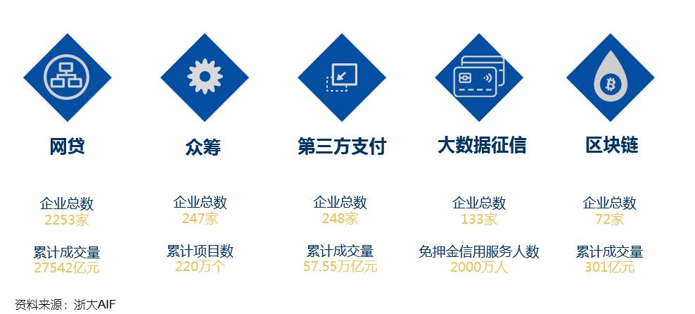 从行业格局来看,近些年包括网贷、众筹、第三方支付、互联网保险和区块链在内的各类金融科技行业逐渐成为了全球金融体系的颠覆力量:网贷,应该说是备受大家争议的一个行业,在经历2015年这个行业拐点之后,已明显从爆发式野蛮增长回归到理性稳定发展,截止目前全球有5000多家网贷平台,累计成交量超过4000亿美元;众筹与网贷有一定的共通之处,也是资金融通的一种新型方式,其分类主要包括产品众筹、公益众筹、股权众筹、债权众筹等,特别是债权众筹与网贷非常接近,因此我们研究院在与金智塔、英国TAB公司和BBD英国共同发布的全球众筹指数(CAMFI)中也将网贷计算入内;第三方支付起源于美国,但在中国有了最大程度的发挥,取得了一系列令人兴奋的发展;互联网保险和区块链也是时下的热点。