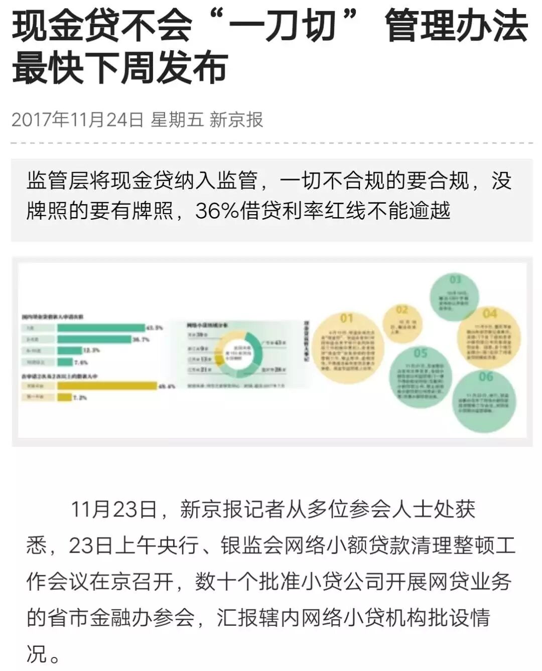监管层将现金贷纳入监管,一切不合规的要合规,没牌照的要有牌照,36%借贷利率红线不能逾越。