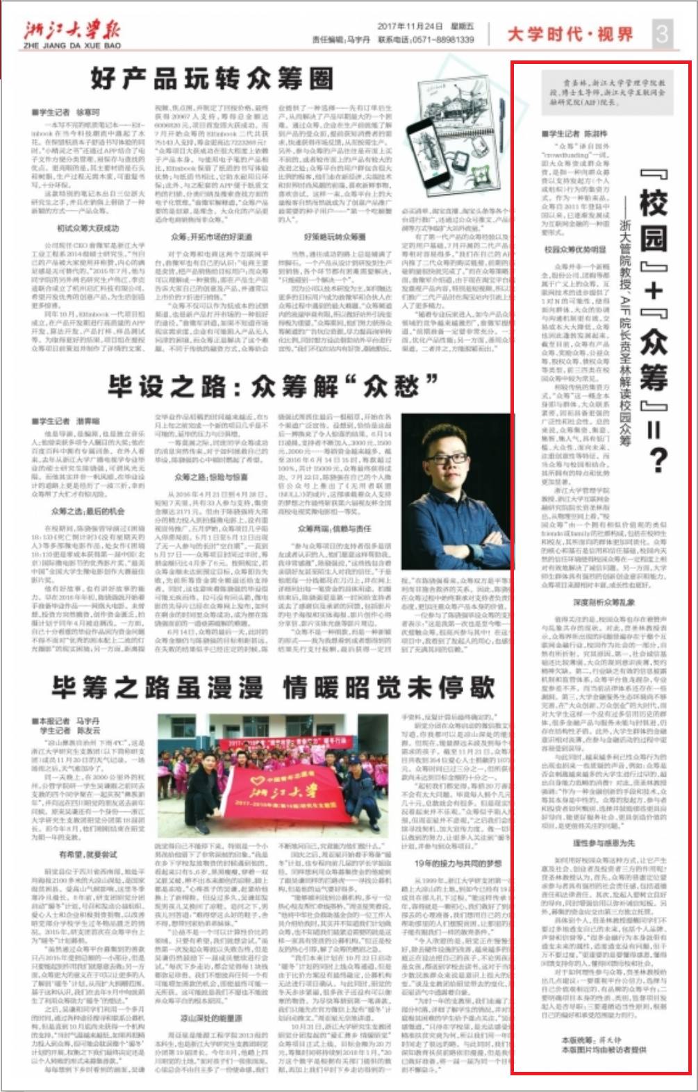 众筹作为互联网金融时代的产物,正在走进校园,走进我们的生活之中。那么,校园+众筹又会产生什么样的碰撞,给大学生带来怎样的影响呢?浙江大学互联网金融研究院(以下简称:浙大AIF)院长贲圣林教授在浙江大学校报中刊登的《“校园”+“众筹”=?》一文中,从校园众筹的优势、深度解剖众筹乱象以及理性参与、感恩为先三个层面,对校园众筹现状进行了分析。贲圣林教授表示,作为一种金融创新的手段和技术,众筹其本身是中性的,如何甄别和选择是更值得关注的问题。